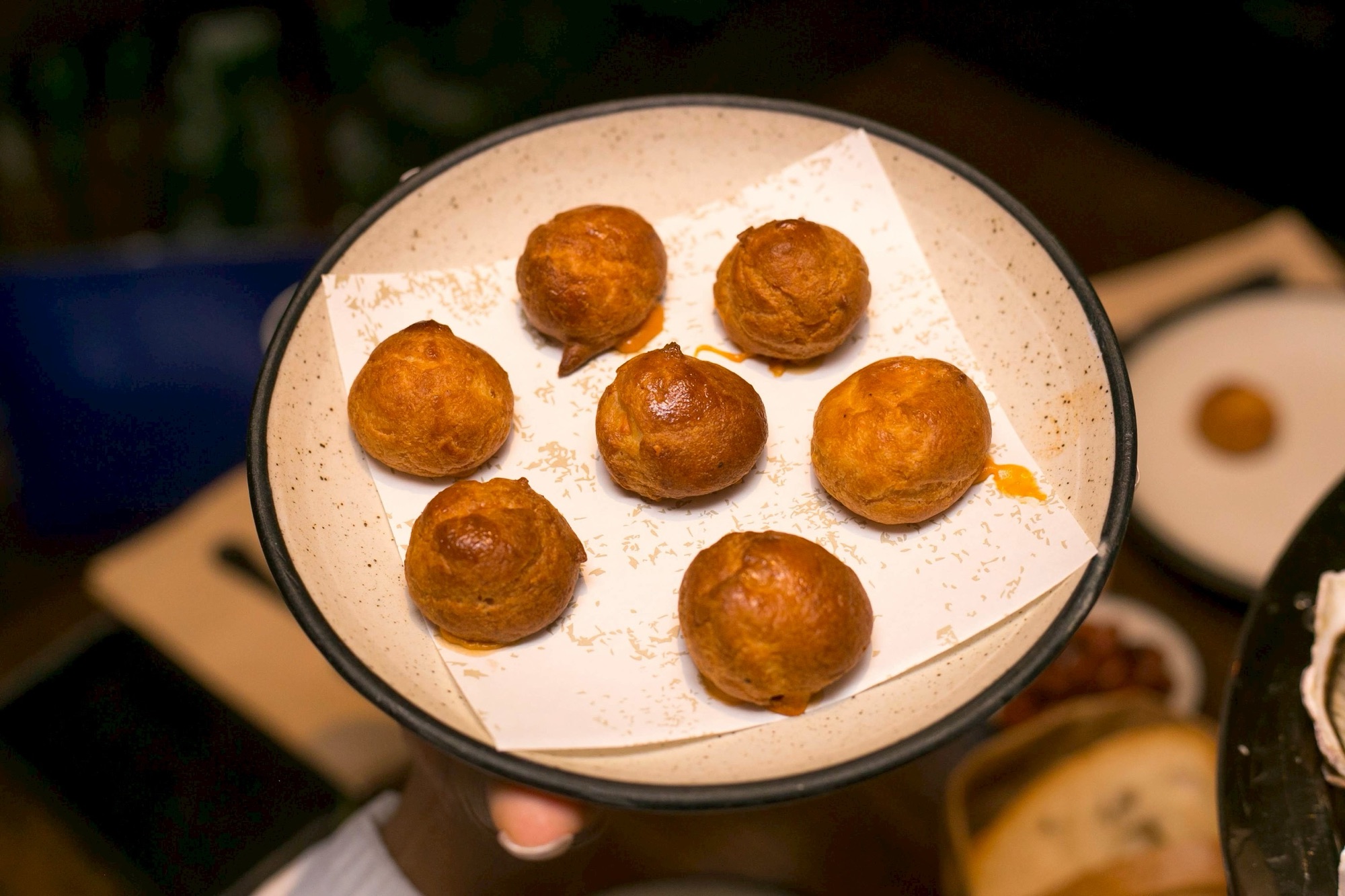 Gougères are a type of French pastry. They are small, light, and airy puffs made from choux pastry