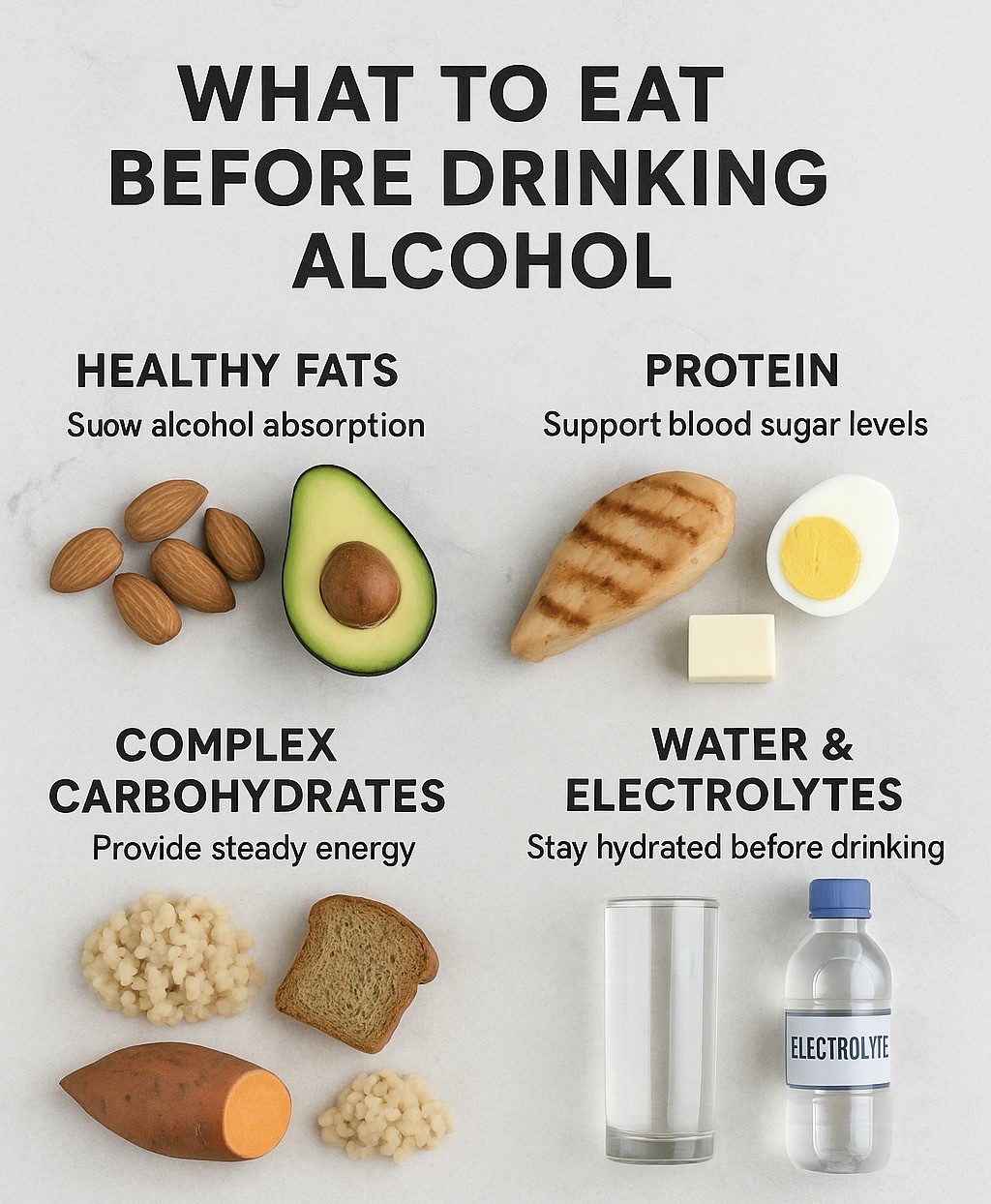 If you eat the right food before drinking, it can help slow alcohol absorption, reduce intoxication, and minimize